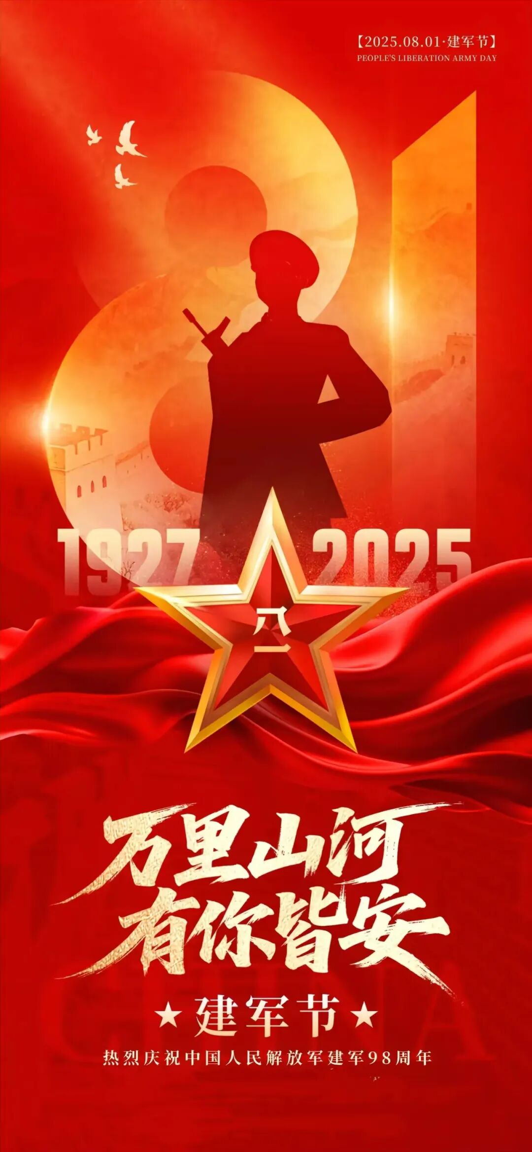 八一建军节到来之际,新疆宏达工程建设有限公司向所有可敬的军人——现役的守护者、退役的奉献者,以及默默支持的军属们,致以最热烈的节日祝福!感谢你们用忠诚与担当守护家国安宁,你们的精神激励着我们砥砺前行。祝节日快乐,安康顺遂!