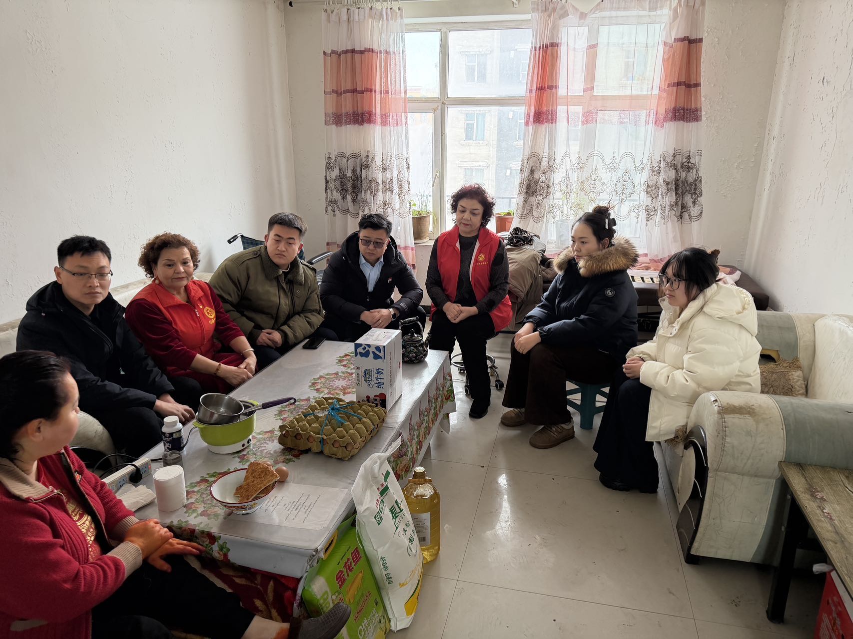 在爱心妈妈的陪同下,慰问组一行走进困难群众家中,与居民促膝谈心、亲切交流。每到一户,张春龙同志都细致询问家庭成员的身体状况、生活开支,耐心倾听大家的实际困难与诉求,反复叮嘱冬季注意防寒保暖,用火用电做好安全防护,安心欢度佳节。